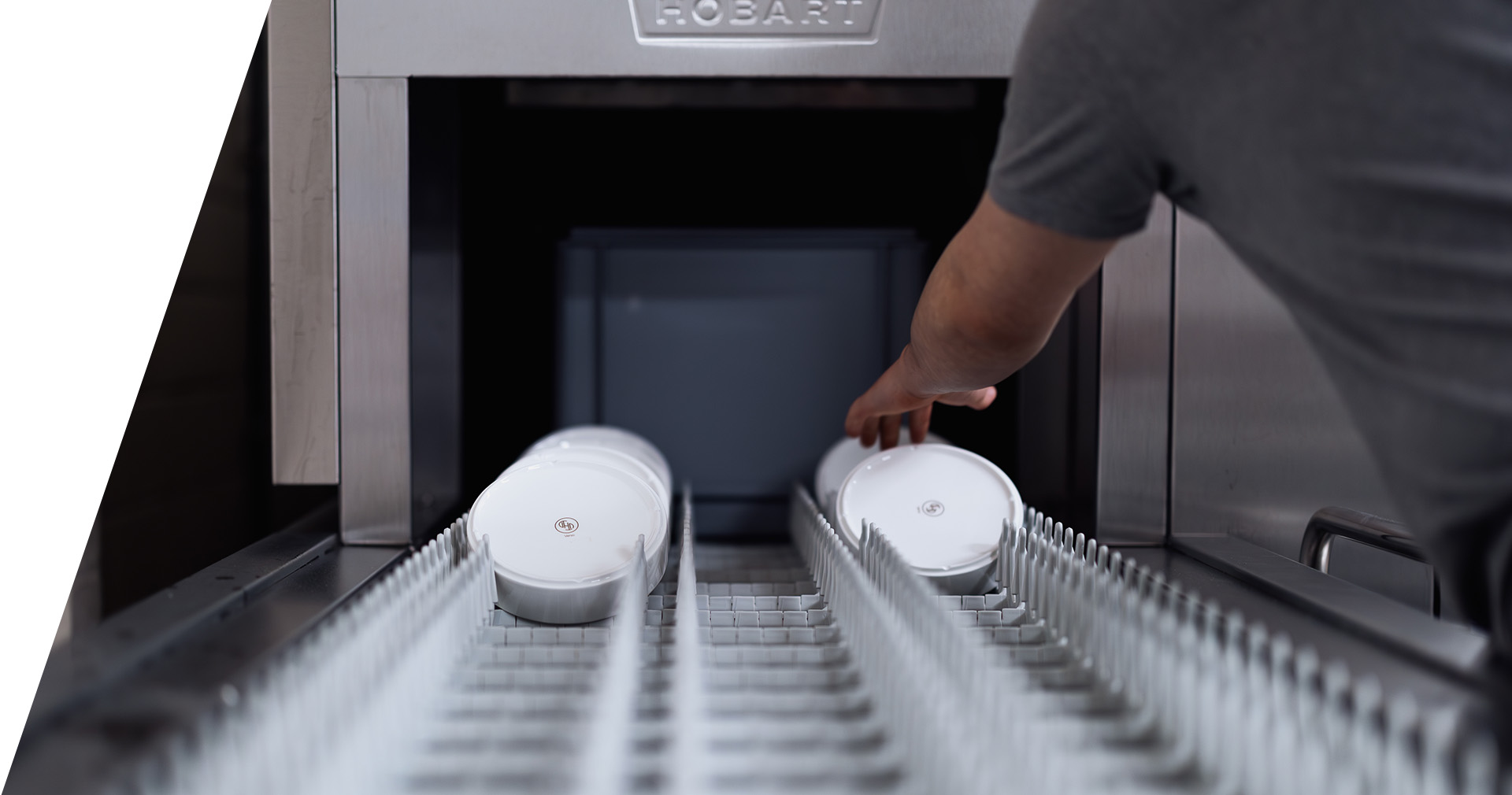 - Moderne vaatwaslijnen: Onze vernieuwde vaatwaslijnen besparen tot 60% water dankzij een cascadesysteem en verbruiken de helft minder reinigingsmiddelen door efficiëntere dosering. Met het energiemanagement systeem vermindert de energiebehoefte met maar liefst 20% t.o.v. de vorige generatie band- en bestekvaatwasmachines.