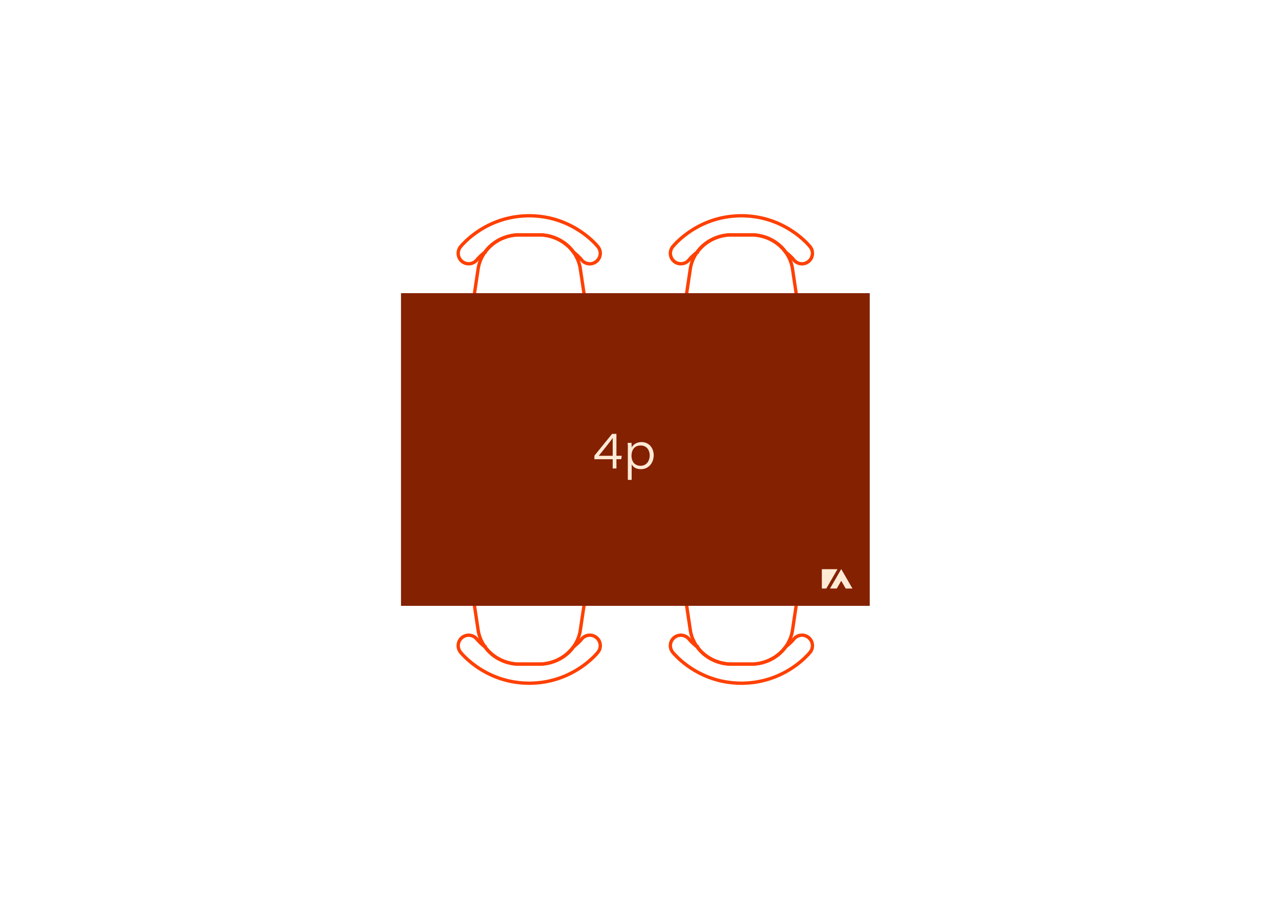 Bankettafel 200x100cm met 1 halve rondeBankettafel geschikt voor 4 personen