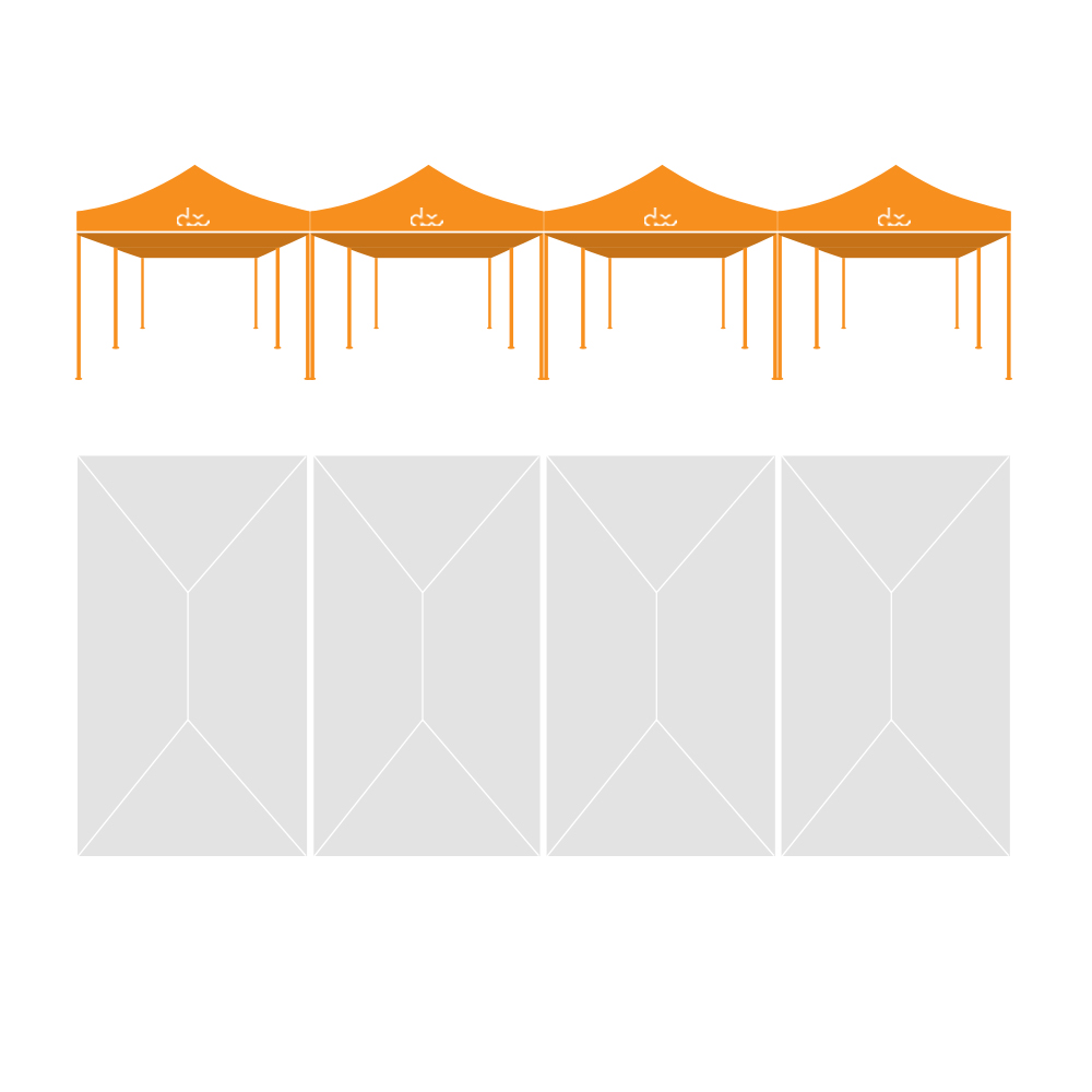 Uw tent uitbreiden? Geen probleem! Dankzij onze verbindingssystemen kan men gemakkelijk meerdere plooitenten aan elkaar koppelen.