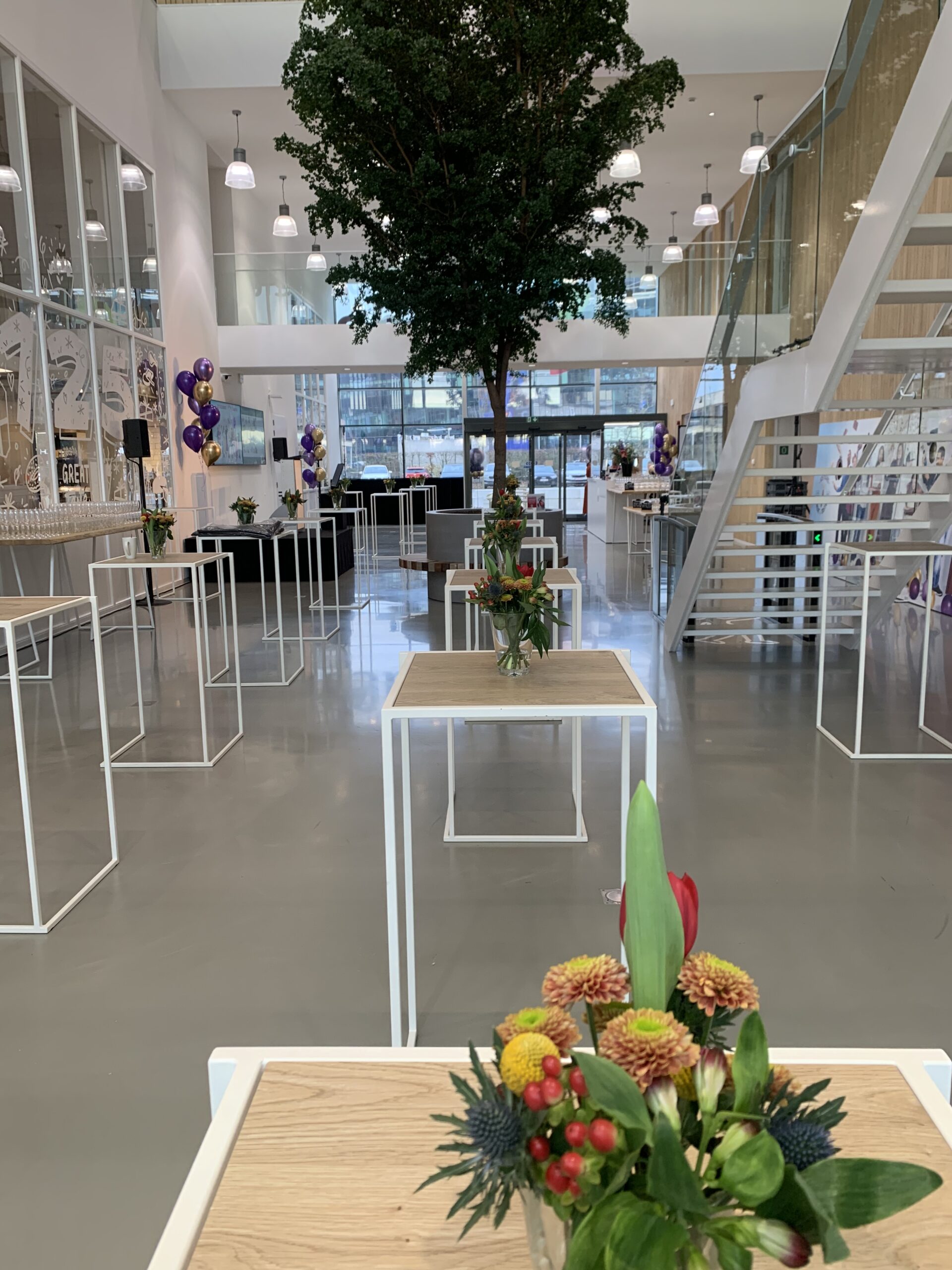 Hoge receptietafel met omkeerbaar HPL eik/wit tafelblad